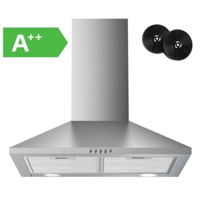 FIREGAS Hottes Aspirantes 60cm 368m³/h-Evacuation ou Recyclag-3 Niveaux de Vitesse-Hotte Murale-Inox-Classe énergétique A++
