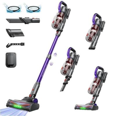 Aspirateur Balai sans Fil Erabros EV3-500W/60Kpa-60Min-Commande du pouce-Auto-Portant-Batterie Amovible-Anti-Emmêlement