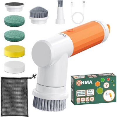 Brosse Électrique Rotative Étanche IPX7 6 en 1 pour Salle de Bain, Cuisine, Jardin, Spa, Camping-Car, Bateau