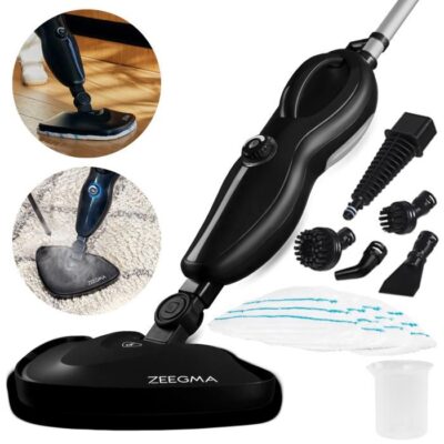 ZEEGMA Puur - Balai vapeur, Nettoyeur haute pression - 15 en 1 - 1500 W - 370 ml - 7 accessoires - 2 filtres à eau - Câble 5 m