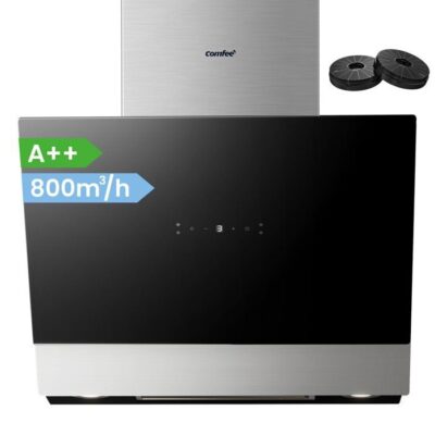 Hotte Aspirante Inclinée 60cm Comfee - 800m³/h - Classe A++ - Commandes Gestuelles - 4 vitesses - 2 Filtres à Charbon - Verre Noir