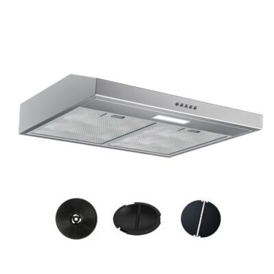 FIREGAS Hotte Aspirante 60cm, Extracteur de Cuisine Sans Évacuation, 3 Vitesses, Avec Filtres à Charbon, Argent