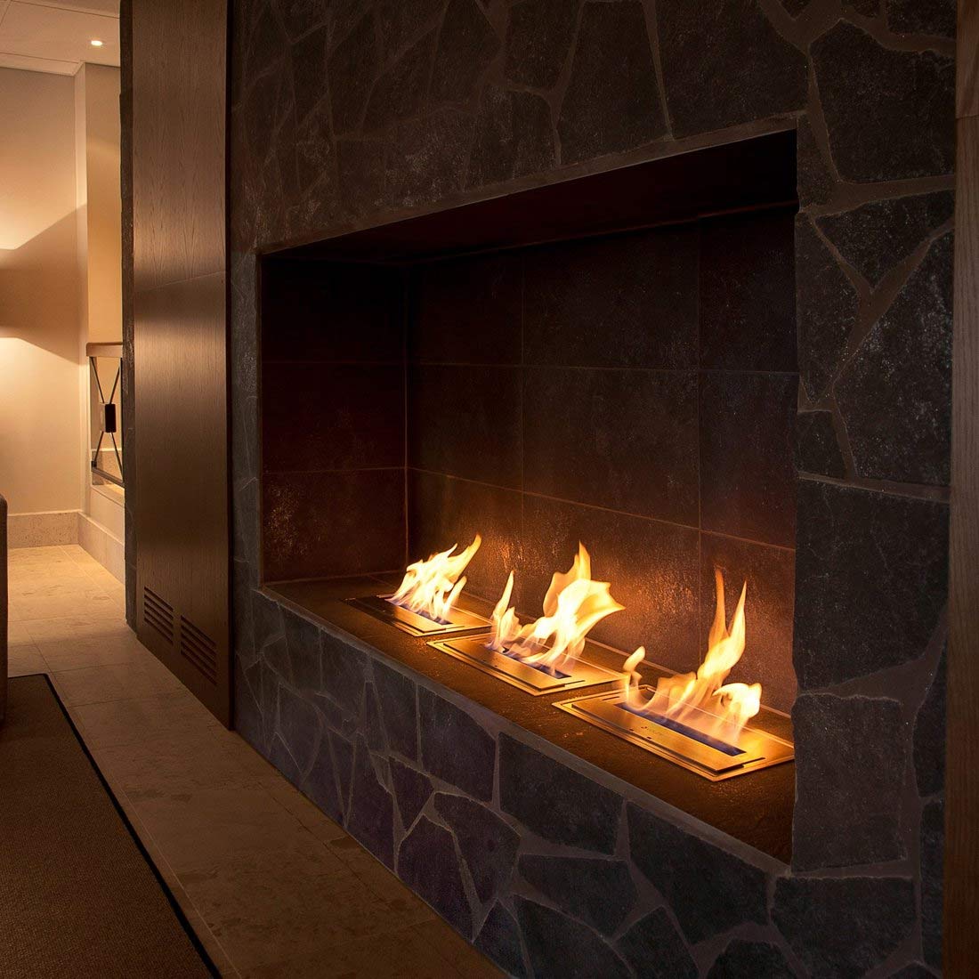 Le design élégant en inox brossé et l’intégration discrète au sol ou dans une niche donnent l’impression qu’une flamme jaillit du sol. Grâce à l’obturateur du brûleur, il est possible de régler la hauteur de la flamme. L’installation est très simple, il vous suffit de prévoir un espace correspondant aux dimensions du modèle choisi. Avec des puissances de 2000 et 3000 watts (respectivement pour les versions de 31,5 et 40,5 cm), RE:Build est capable de chauffer une pièce de 20 à 30 m². Avec une autonomie maximale de 6 heures, ce brûleur au bioéthanol est un produit à considérer pour tout projet personnalisé d’une cheminée au bioéthanol !