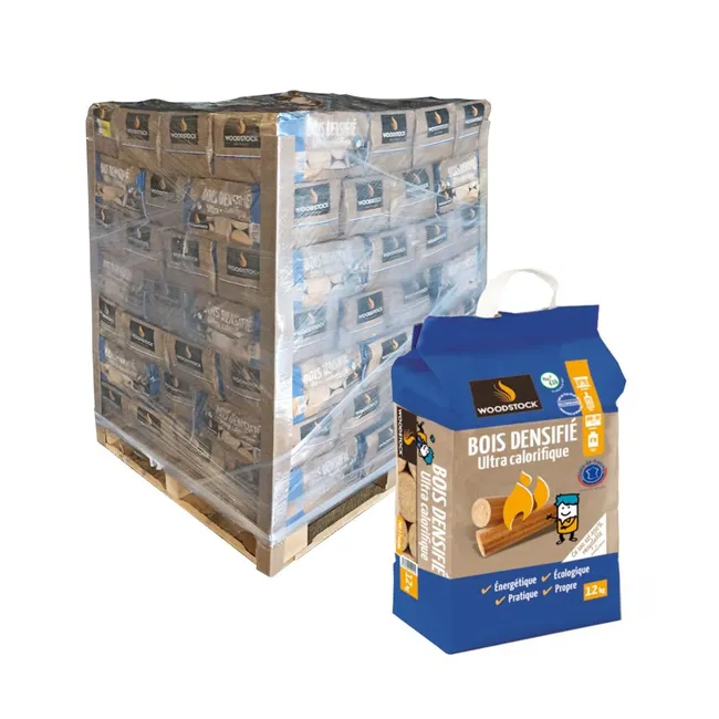 Les bûches densifiées Woodstock bois ont été spécialement conçues pour les appareils nouvelle génération à haut rendement. Fabriquées en France, l’ensemble de la matière première provient de bois issus de forêts locales gérées durablement. Les sciures et copeaux de bois sont séchés et compactés à très haute pression, sans aucun liant ni additif. Trois fois moins encombrantes et ultra denses, le pouvoir calorifique d’une bûche équivaut à 3-4 bûches traditionnelles. Leur performance énergétique est optimale, avec un apport de chaleur intense et immédiat. Une seule bûche suffit ainsi pour plus d’une heure de combustion ! Compact et propre, vous profitez du bonheur des feux de bois, sans aucune contrainte ! Leur qualité haute performance est testée et approuvée par le laboratoire CERIC.