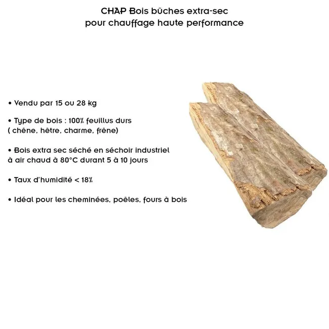 CHAP Bois bûches extra-sec pour chauffage haute performance