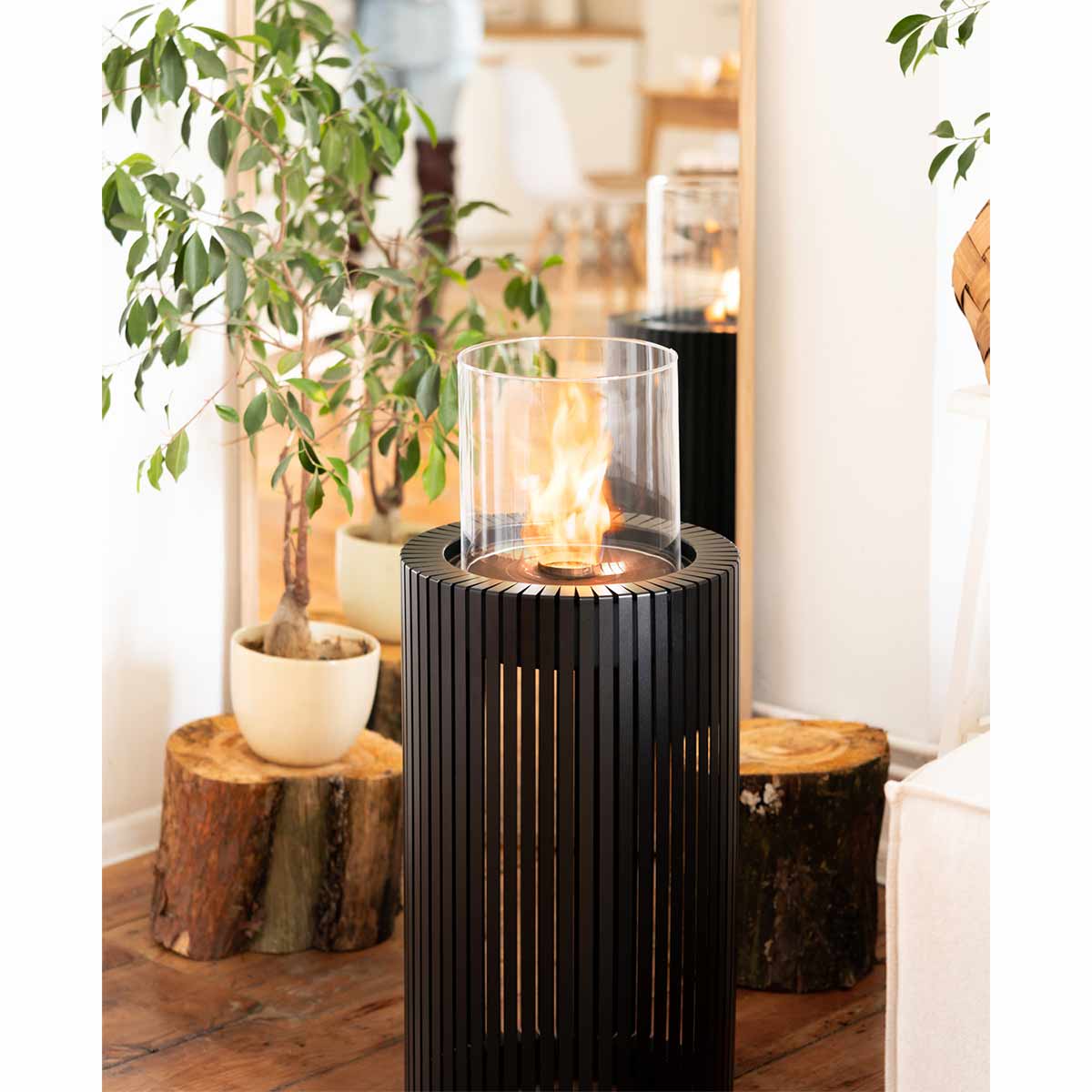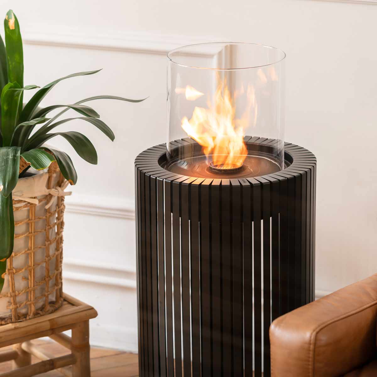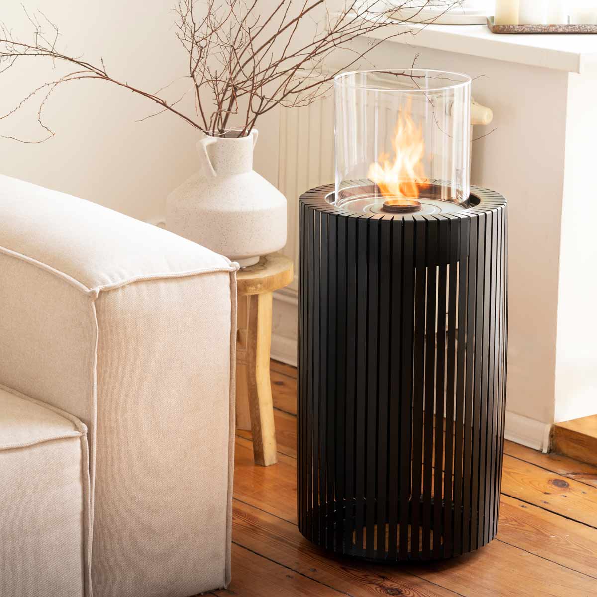 Mandala est une cheminée autonome au bioéthanol à poser directement au sol, sur l’allée d’un jardin, sur une terrasse ou n’importe quel espace intérieur. Son design élégant en acier noir mat offre un très beau contraste avec les flammes. Sa forme cylindrique striée, surplombée par une vitre également cylindrique, dévoile une vue à 360° sur le feu et ravira les amateurs de décoration !