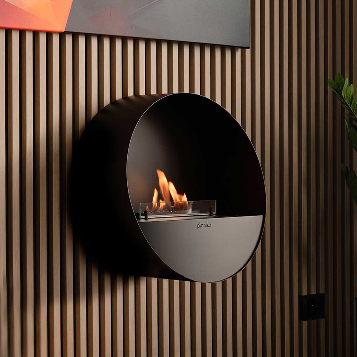 Cupola de la marque Vauni est une cheminée murale aux traits uniques disponible en 5 coloris de manteau, du blanc au noir, en passant par un gris métallique et un marron chaleureux. Design et efficace, elle ne laisse personne indifférent, particulièrement avec le magnifique contraste offert par le fond noir et les flammes !