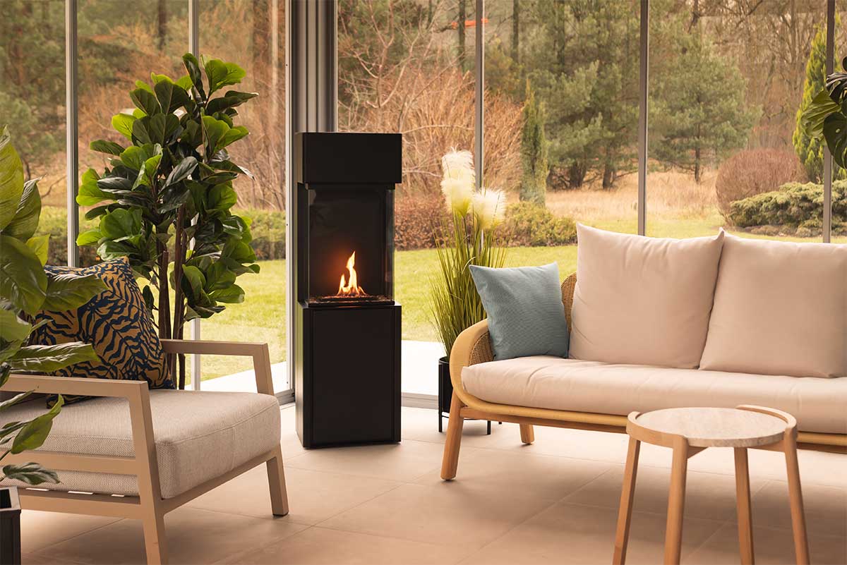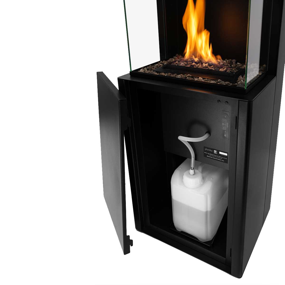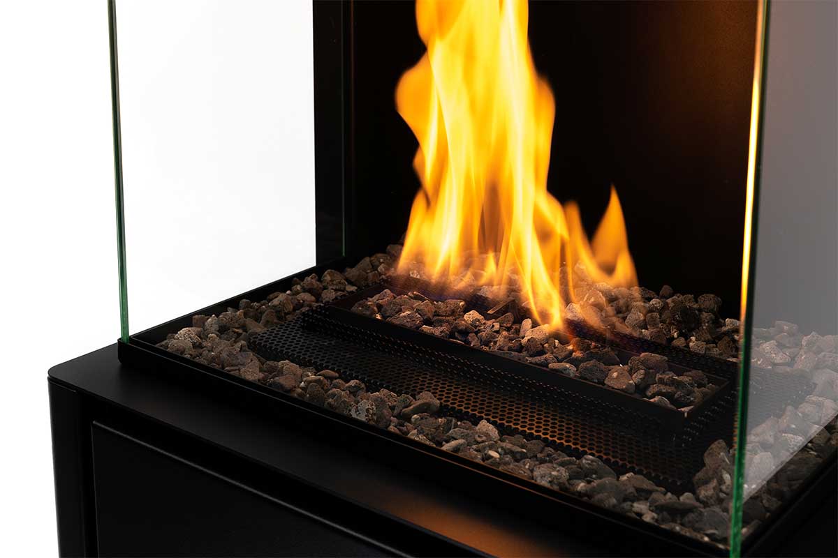 Arcticon est équipé d’un brûleur automatique bénéficiant de la technologie innovante et brevetée BEV Technology®. Cette technologie garantit un processus de combustion propre, sans émission de fumée, d’odeur ou de cendres. La flamme est produite par la combustion des vapeurs d’éthanol, sans aucun contact direct avec le combustible. Une télécommande et un panneau de contrôle vous permet d’allumer les flammes et de les régler sur l’une des 2 hauteurs disponibles.