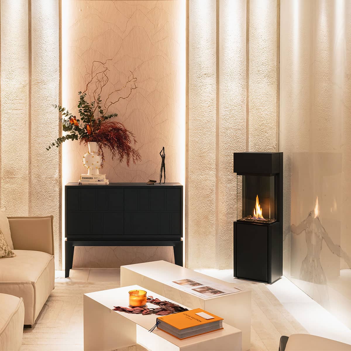 Du haut de ses 126 cm, ce poêle moderne en acier noir mat est un magnifique élément décoratif d’inspiration scandinave. La vue panoramique sur les flammes, sur 3 côtés, à travers une vitre en verre trempé, est tout simplement hypnotisante !