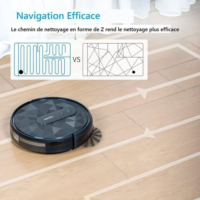 • 120 minutes d’autonomie : le robot aspirateur P20 peut nettoyer jusqu’à 120 minutes (jusqu’à 1500 pieds carrés d’espace) en mode silencieux sur une seule charge, lorsque la batterie est faible, il reviendra automatiquement à la station de charge pour se recharger.