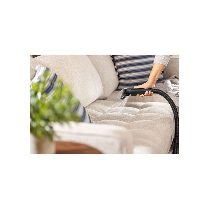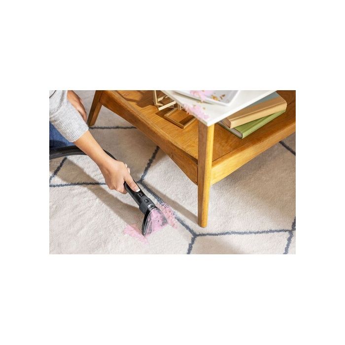 Polyvalent : Ce nettoyeur polyvalent est idéal pour les tapis, les tissus d’ameublement, les escaliers, les moquettes et même l’intérieur des voitures. Son tuyau intégré extra-long de 1,7 mètre vous permet d’atteindre tous les recoins, à tout moment.