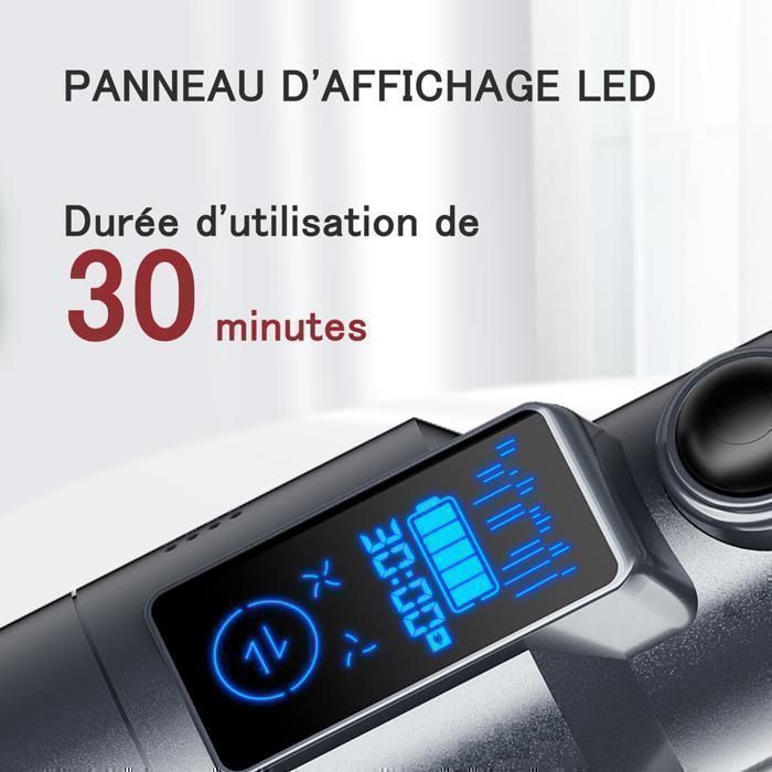 | Fonctions spéciales | Cet aspirateur à main est doté d’un écran d’affichage LED interactif intelligent. Analysez avec précision le temps d’utilisation restant avec différents niveaux et différentes puissances d’aspiration. L’écran d’affichage numérique LED clair simplifie et rend l’utilisation plus intelligente. |