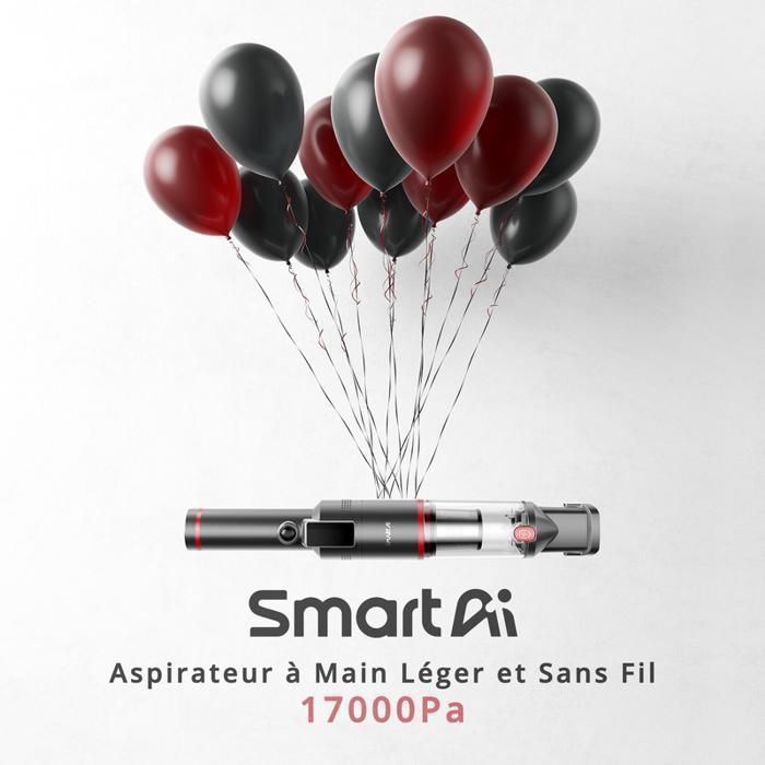 | Nom du produit | Aspirateur à Main Sans Fil Rechargeable – SmartAI H5 – 145W/17000Pa – jusqu 30 Mins – Affichage LED – Voiture,Maison,Poils |