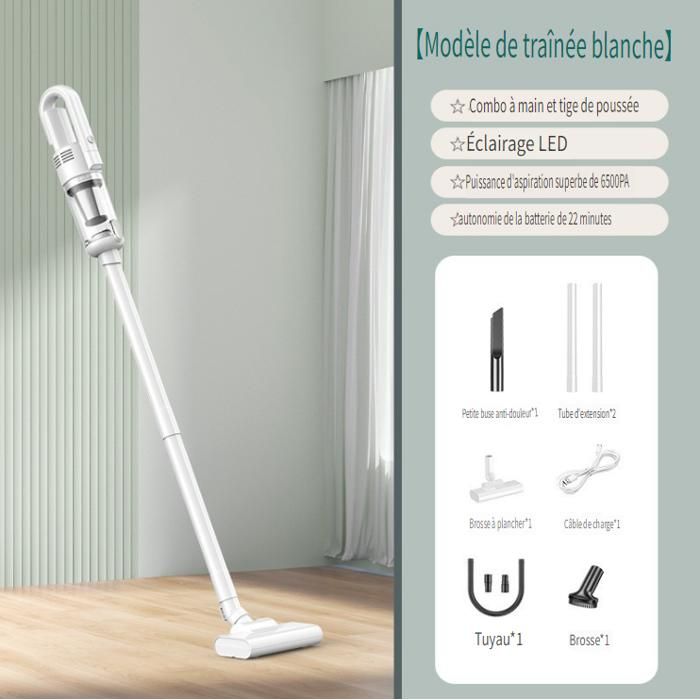 Aspirateur de voiture à main-6500Pa-convient pour un usage domestique, aspirateur de voiture-blancDescriptif: Aspirateur de voiture à main [Matériel]: ABS [Tension nominale]: DC 7.4 V [Vide]: 6000PA±10% [Vitesse nominale]: 38000 tr / min±10% [Capacité de la batterie de la batterie au lithium]: 2*2000mAh [Matériau Haipa]: tissu laminé à chaud ABS+PVC+ polyester [Mode de charge]: DC5V – 2A (port de type C) [Puissance nominale]: 50W±10% [Bruit]: ≤84dB [Température de fonctionnement]: -20℃~ + 50℃