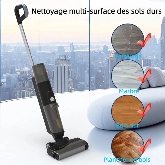 Aspirateur Balai Laveur Sans fil, 3 en 1/50 MINS D’AUTONOMIE /200W/4.5kPA/0.65L, Pour sols durs et moquettes