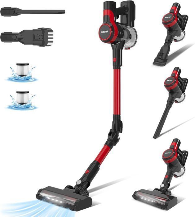 Aspirateur Balai sans Fil Stanew, 30Kpa Aspirateur sans Fil Puissant, 320W Aspirateur Pliable, 40Min Autonomie, LED
