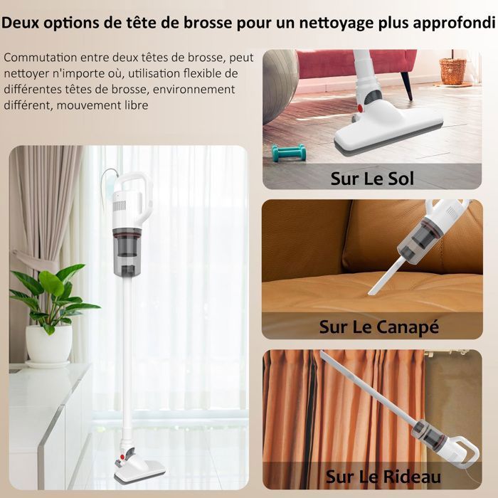 Brosse d’aspiration:Nettoyez les surfaces hautes telles que les plafonds, la poussière de climatisation et les rideaux.