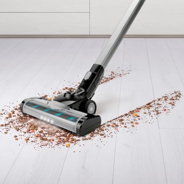 3 aspirateurs en 1 : aspirateur balai, aspirateur à main et aspirateur lance « EXTENSIVE ». Et, en plus, il dispose d’un accessoire 2 en 1 : brosse pour meubles/tapisserie et lance pour fentes pour l’aspirateur à main. Montez et retirez les accessoires en un seul clic. Produit avec 2 ans de garantie.