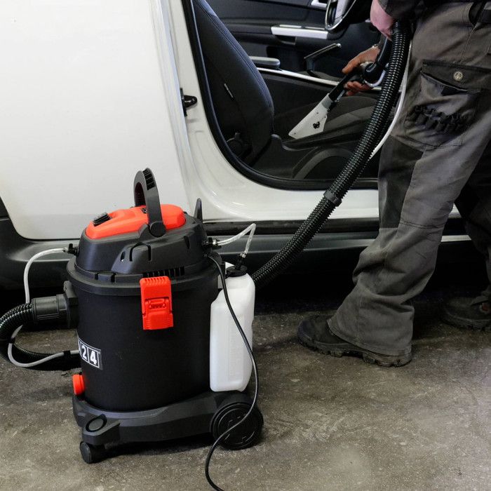 L’aspirateur injecteur extracteur dispose d’une puissance élevée de 1200W, il est idéal pour le nettoyage en profondeur des surfaces textiles telles que les sièges de voiture, les tapis ou bien encore les moquettes.Il est équipé d’un réservoir à détergent amovible d’une capacité de 3 litres.La grande cuve de 20 litres permet une utilisation sur une longue durée sans avoir à la vider trop souvent. L’orifice présent sur le devant de la cuve en partie basse permet d’effectuer facilement la vidange en dévissant le bouchon.L’aspirateur dispose d’un grand câble d’alimentation longueur 7,5m et d’un flexible avec pistolet à détergent d’une longueur de 2m. Les roues 2 fixes et 2 pivotantes ainsi que la poignée permettent de le déplacer facilement.Le bouton sélecteur permet de passer facilement du mode aspirateur classique au mode nettoyage avec pulvérisation du détergent.Il y a plusieurs filtres différents lavables et interchangeables en fonction de l’utilisation : filtre HEPA pour l’aspiration des poussières et un filtre éponge à utiliser pour l’aspiration de l’eau.Pour convenir à différentes utilisations, l’aspirateur injecteur extracteur est livré avec différents accessoires :Pour le lavage : un suceur large pour les tapis de sol, un petit suceur pour les sièges, une large brosse pour les sols secs et humides et une petite brosse ronde.Pour l’aspiration : un sac à poussière pour une utilisation à sec et un suceur plat pour aspirer les différents recoins des sièges et de la voiture.Avis de l’utilisateurL’aspirateur injecteur extracteur convient parfaitement pour le nettoyage de tapis moquette et tissus. Les nombreux accessoires de nettoyage inclus sont un pl