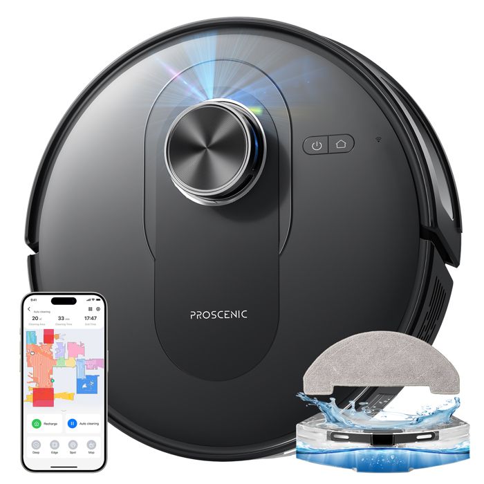 Proscenic Q8 – Aspirateur Robot Laveur 2 en 1 – 6000pa – Automnomie 200Min – Navigation LiDAR – Alexa, Google Home, Siri, IFTTT, APP