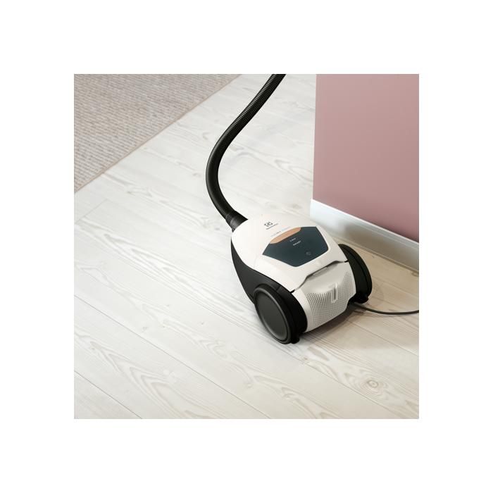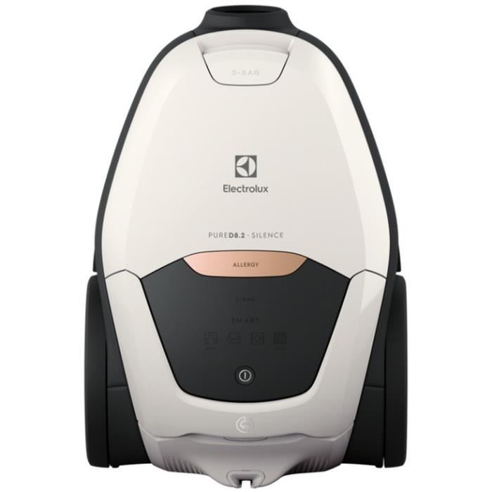Aspirateur avec sac Pure D8.2 Allergy Electrolux PD82-ALRG intelligent et silencieux.L’aspirateur repenséGrce au système PureSound, PD82-ALRG est le plus silencieux de nos aspirateurs : seulement 57 dB(A). Respectueux de l’environnement, il est constitué de 55% de matière plastique recyclée.Technologie SmartMode. Régulation automatique de la puissance entre sols durs et tapisUne aspiration puissante et intelligente totalement unique. La technologie avancée SmartMode détecte le type de sol et adapte automatiquement la puissance d’aspiration pour passer en douceur des sols durs aux tapis et offrir des résultats impeccables.Système PureSound. Incroyablement silencieux sur tous les sols, avec seulement 57 dB(A)Aspirez en silence grce au Système PureSound. La combinaison de son nouveau moteur, de son système d’aspiration entièrement étanche et de sa brosse au design spécifique vous permettront d’aspirer en silence tous vos sols. Passez l’aspirateur librement sans déranger les gens autour de vous.Brosse OneGo Power Clean pour une meilleure aspiration, quel que soit le type de solLe design innovant de la brosse OneGo Power Clean permet une meilleure aspiration des plus petites aux plus grosses particules, quel que soit le type de sol. Sa forme parfaite vous permet d’aspirer tous vos sols sans effort et d’un simple mouvement.55% recyclé. 100% durableToujours soucieux de l’environnement, nous avons conà§u un aspirateur composé de 55% de matériaux recyclés. Sans compromettre la qualité, PD82-ALRG est le choix durable.Sa poignée ergonomique vous permet de le déplacer facilementDéplacez et transportez votre aspirateur sans effort grce à sa poignée ergonomique. Située au centre de l’appareil, elle permet de répartir le poids de faà§on équilibrée pour une plus grande stabilité.