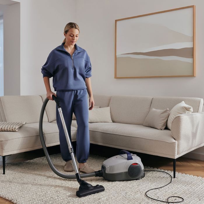 • Fonctionnement silencieux malgré une puissance élevée grâce à la conception du labyrinthe • Bruit de fonctionnement jusqu’à 68 dB: fonctionnement silencieux même en mode le plus puissant • Portée de fonctionnement jusqu’à 12 m • Tube télescopique chromé • 3 roues permettant la rotation autour de son axe • Stockage vertical et horizontal • Compartiment de rangement pour les petits accessoires • Conteneur de sac spacieux: 4 l • Sac en papier jetable et sac en tissu réutilisable inclus • L’utilisation de sacs facilite le nettoyage de l’aspirateur. Il suffit de retirer le sac et de le remplacer ou de le vider • Sans risque d’allergie • La cartouche de parfum supplémentaire absorbe les éventuelles odeurs désagréables et laisse un parfum agréable et délicat • Mode de rétraction automatique du câble |
