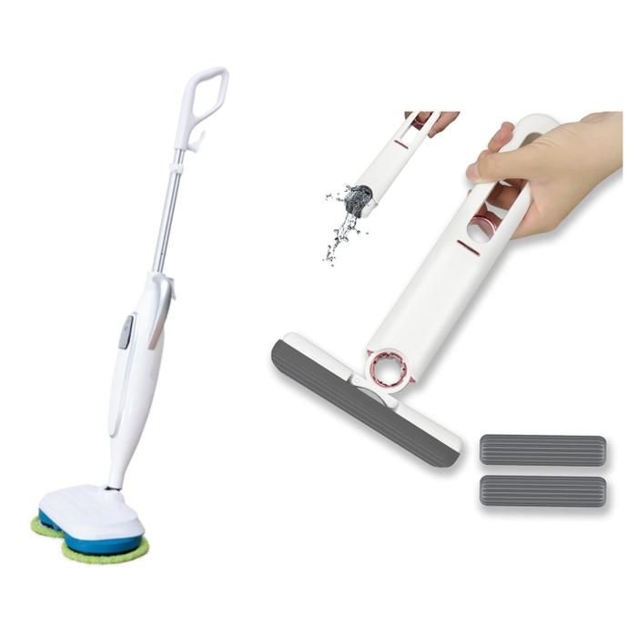 BALAI ELECTRIQUE ET MINI MOP NETTOIE TOUT – Balai vapeur automatique – Double tête rotative – Eponge pour Salle de Bain, Cuisine,