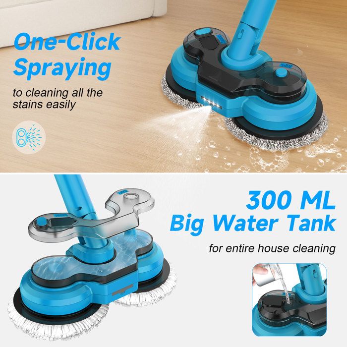Ce balai électrique rotatif est doté d’un manche réglable en longueur et d’une poignée d’assistance en forme de T, de conception ergonomique, d’un réservoir d’eau amovible de 300 ml et d’un éclairage LED, qui peuvent être adaptés à différentes hauteurs et scénarios d’utilisation, réduisant ainsi efficacement la fatigue liée au nettoyage.