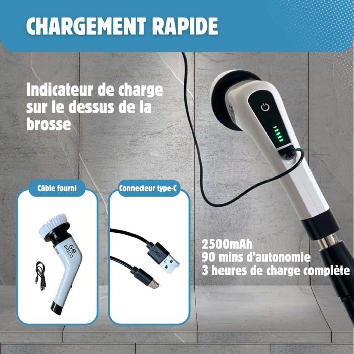 Puissance de nettoyage Cette électrique est conçue pour un nettoyage en profondeur et efficace de toutes les surfaces. Fonctionnement sans fil Grâce à sa batterie rechargeable, elle offre une liberté de mouvement totale. Tête rotative Sa tête pivotante permet d’atteindre facilement les endroits difficiles d’accès. Plusieurs accessoires inclus Différentes s sont fournies pour s’adapter à tous les types de surfaces. Légère et maniable Son design ergonomique assure une pr en main confortable et une utilisation sans fatigue.