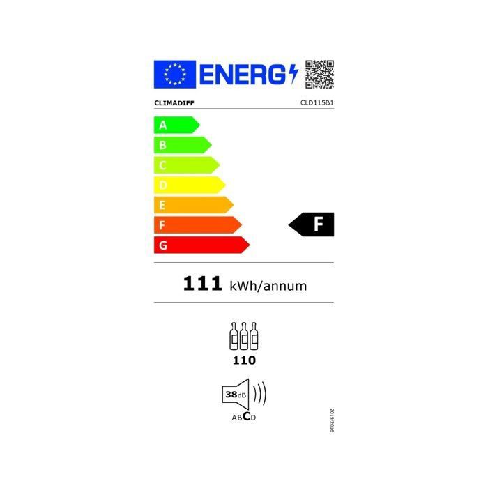 | Nom du produit | Cave à vin CLD115B1 Climadiff – 110 bouteilles – double zone 5-20°C – porte vitrée anti-UV – Vinotag – clayettes bois |