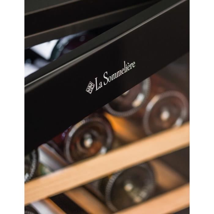 | Nom du produit | Cave à vin de service – LA SOMMELIERE – SLS45DZ – 45 bouteilles – Porte vitrée – Classe G – 49,5 x 58 x 84 cm – Noir |