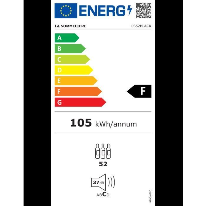 | Nom du produit | Cave à vin La Sommelière LS52BLACK – 52 bouteilles – Température 5-20°C – Clayettes bois – Porte vitrée – Silencieuse 37 dB |