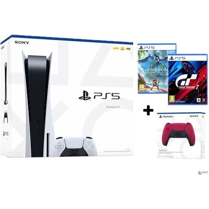 Pack PS5 + Horizon Forbidden West PS5 + Gran Turismo 7 PS5 + Manette PS5 Rouge