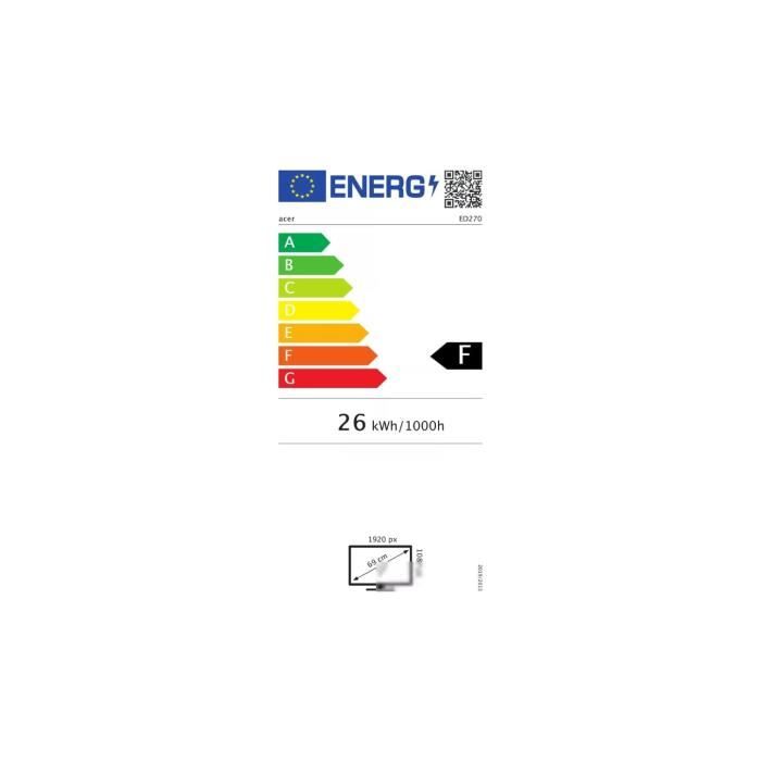 Ecran PC Gamer Incurvé – ACER ED270Xbiipx – 27″ FHD – Dalle VA – 1 ms – 240 Hz – 2 x HDMI / DisplayPort