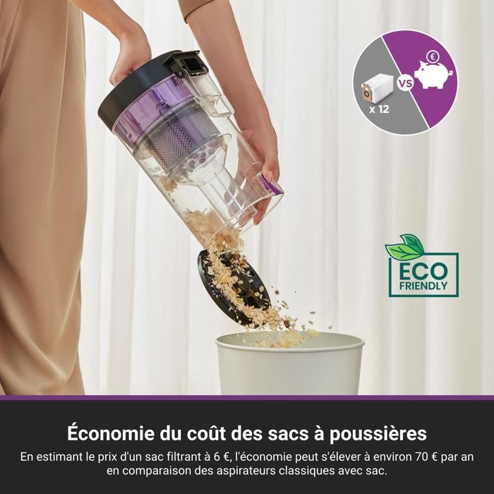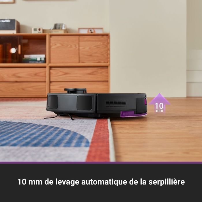 45 Jours sans NettoyageLe Robot Aspirateur Laveur Eureka E10s est équipé d’une station d’aspiration automatique de 2L et d’un bac à poussière écologique à la place des sacs à poussière. Cette configuration peut collecter et stocker de la poussière et de la saleté pendant jusqu’à 45 jours.Navigation LiDAR Précise et Évitement d’ObstaclesEn tant que aspirateur robot laveur avancé, le robot aspirant lavant E10s crée des cartes précises de votre maison, évite les obstacles et garantit ainsi un nettoyage efficace. Grâce à la navigation LiDAR et aux algorithmes SLAM, il dessine des cartes dynamiques et planifie des itinéraires intelligents.Puissance d’Aspiration de 4000Pa et Autonomie de 180 MinutesL’E10s est un aspirateur robot laveur avec station avec quatre niveaux d’aspiration réglables, capable de pénétrer profondément dans les tapis et d’éliminer complètement la saleté, les débris, les poils d’animaux et les autres résidus sur les surfaces dures grâce à sa puissante aspiration de 4kPa. Une grosse batterie de 5200mAh permet une durée de nettoyage continue allant jusqu’à 180 minutes.Fonction de Levage Intelligente de la Serpillière Automatique de 10 mmNotre robot laveur de sol est équipé d’un système intelligent qui soulève automatiquement la plaque de vadrouille de 10 mm lorsque un tapis est détecté ou que l’appareil dépasse la zone de nettoyage. Cela évite les rayures et les traces d’eau dans les zones non à nettoyer.Programmes d’Application PersonnaliséeLe robot aspirateur laveur E10s avec station possède des fonctions completes, y compris la détection automatique de tapis, le réglage des zones interdites/mur virtuel, le contrôle via application/voix et le nettoyage programmé. Vous pouvez contrôler à distance le mode de nettoyage et le calendrier via l’application Eureka et contrôler l’aspirateur laveur robot directement via des assistants vocaux comme Alexa ou Google Assistant.