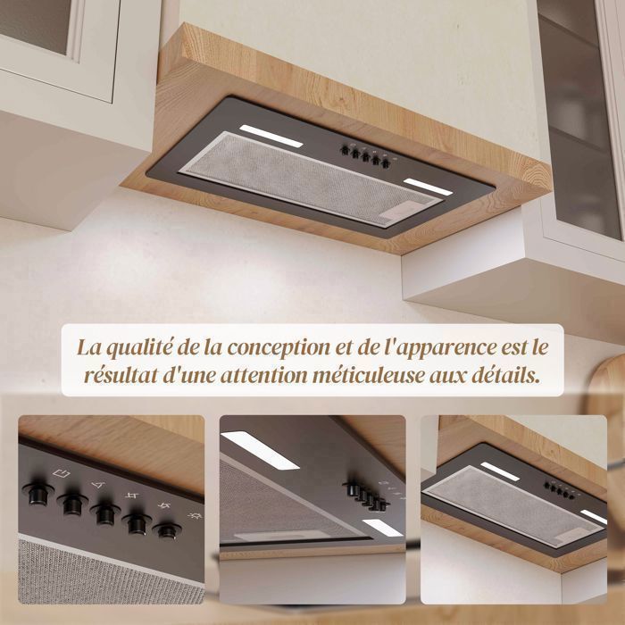 Nom du produit FIREGAS Hotte aspirante encastrée de 52 cm-Aspiration de 350m³/h-Efficace et silencieux-3 Vitesses-Noire-Classe énergétique A