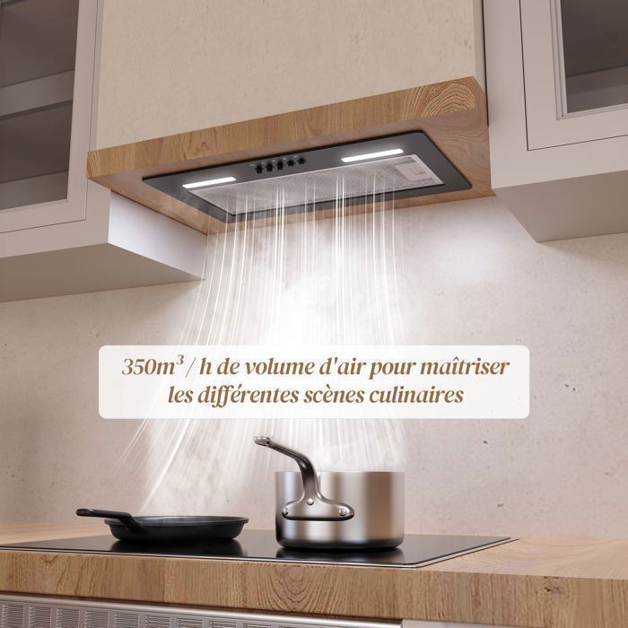 FIREGAS Hotte aspirante encastrée de 52 cm-Aspiration de 350m³/h-Efficace et silencieux-3 Vitesses-Noire-Classe énergétique A