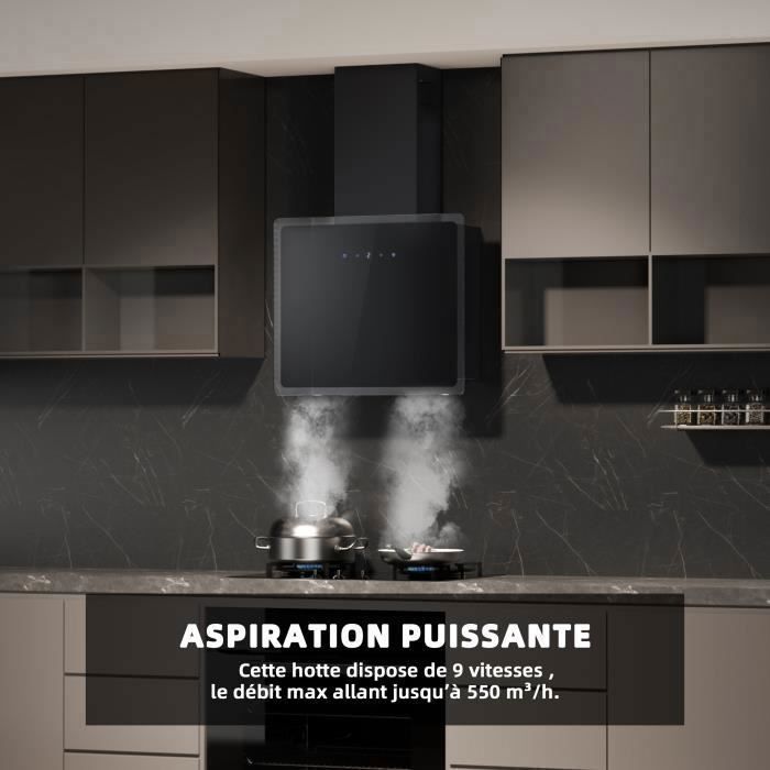 | Nom du produit | FIREGAS Hotte Aspirante Murale 60cm,Moteur Sans Balais, 550 m³/h, 9 Vitesses, Avec Filtre, Noir,Bord Transparent |