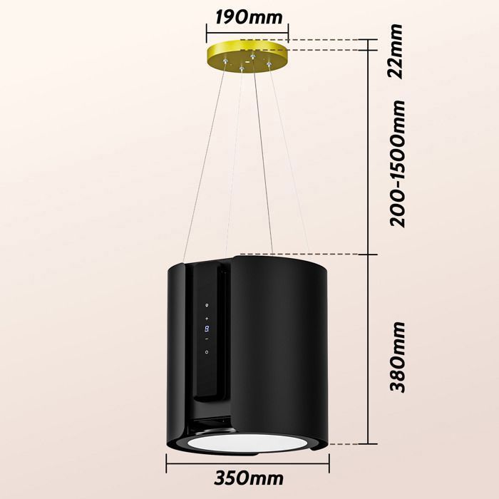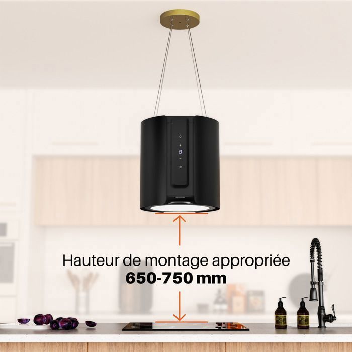 FIREGAS Hotte îlot Centrale 450m ³/ h 39.5cm – Hotte Aspirante 4 Vitesses – Hotte Suspendue Recyclage -Noir-Classe énergétique A