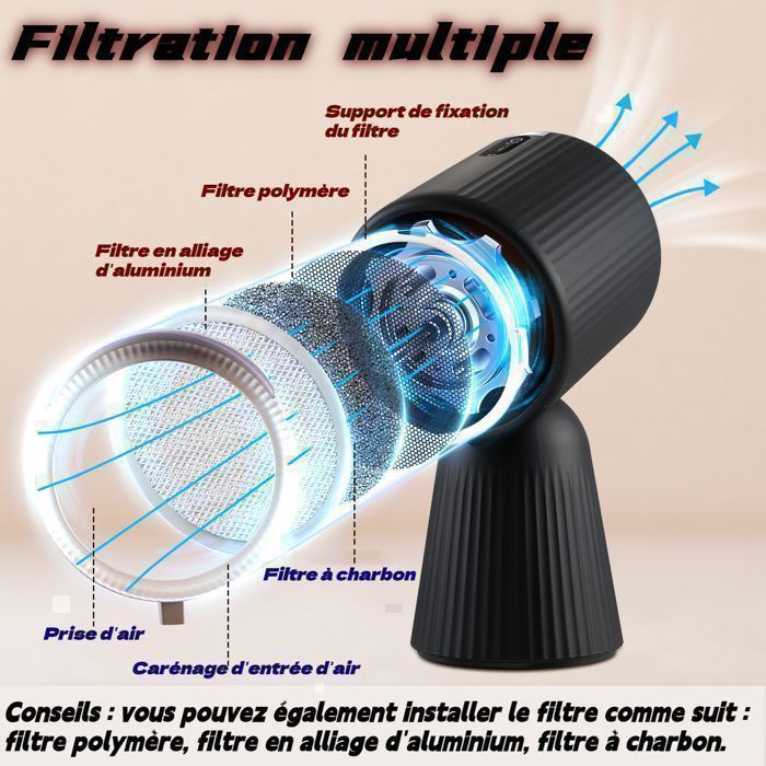 | Filtres fournis | Filtre en alliage d’aluminium, filtre à charbon, filtre en polymère |