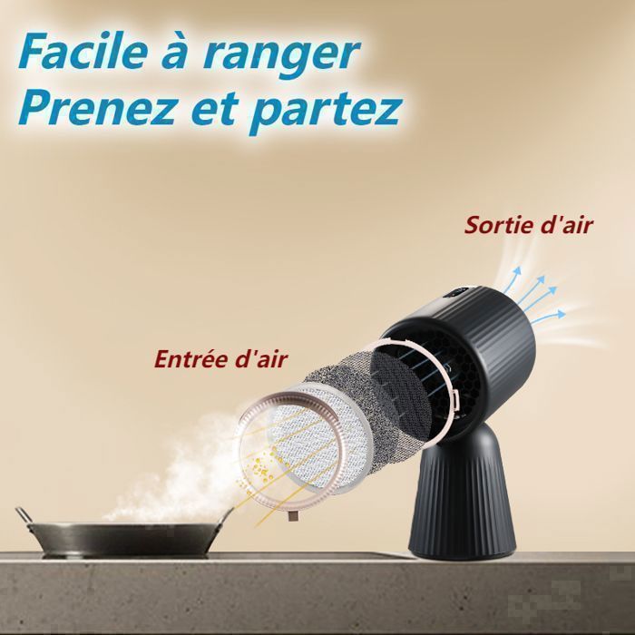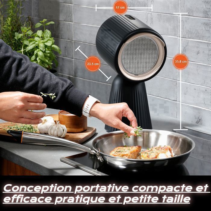 Facile à utiliser : fonctionnalité Plug and Play, branchez simplement le purificateur d’air portable de cuisine et appuyez sur un bouton lumineux pour l’allumer/éteindre et choisir entre 3 niveaux de puissance, aucune installation requise. Que vous cuisiez un plat lentement ou prépariez un repas à haute température, vous pouvez ajuster la force d’aspiration en fonction de votre activité culinaire.