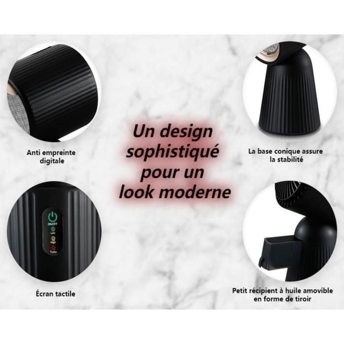 Apparence exquise : le design élégant à rayures noires lui donne un look moderne. Stabilité grâce à la base de forme conique avec tampon en caoutchouc antidérapant. La hotte aspirante sans échappement en matériau ABS, design rayé pour un transport facile, facile à nettoyer, anti-empreintes digitales.