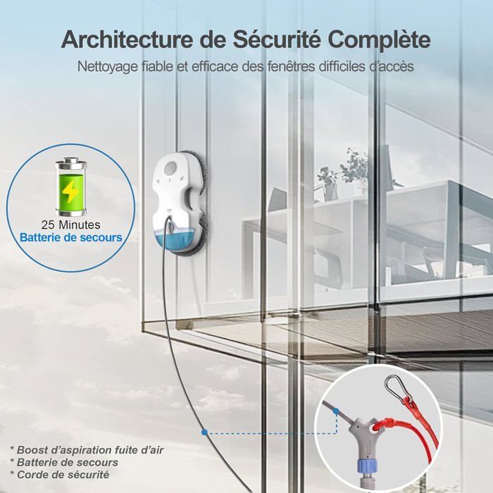 • 【Contrôle Facile par Télécommande】Un seul bouton pour démarrer ! Pilotez le robot vitre nettoyage à distance et atteignez les zones les plus inaccessibles en toute simplicité. Gagnez du temps et profitez de fenêtres toujours propres.