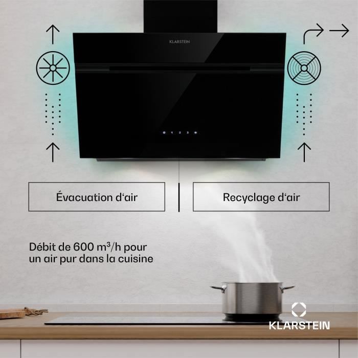 Klarstein Alina Hotte aspirante 60 cm CEE A Tactile Eclairage LED évacuation-mode recyclage d’air 615 m³-h
