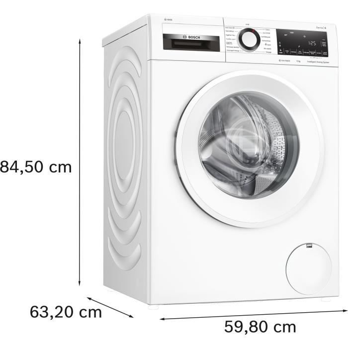 | Nom du produit | Lave-linge hublot BOSCH WGG244F1FR SER6 – 9 kg – i-DOS – Induction – L60cm – 1400 trs/min – Classe A – Vapeur – Blanc |