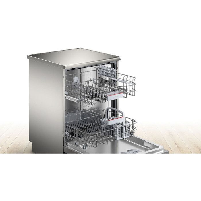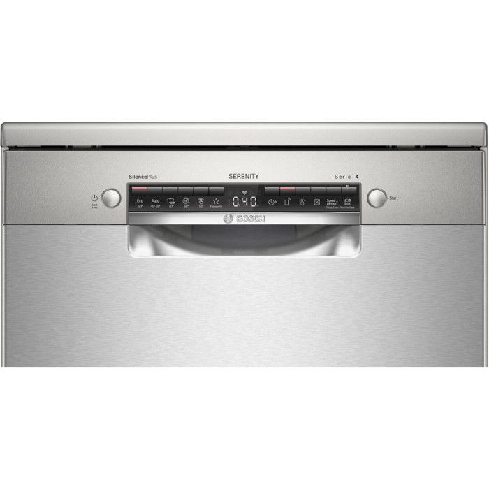 Caracteristiques principales : Classe énergétique : C.Consommation d’énergie sur 100 cycles éco : 74 kWh.Nombre de couverts : 13.Consommation d’eau par cycle : 9 l.Durée du programme éco : 215 min.Niveau sonore : 44 dB.Fonctionnalités du lave vaisselle : Affichage du temps restant, Départ différé, Capacité ajustable automatiquement, Capacité variable, Zone Booster.Type de pose : Pose libre.Dosage automatique : Non.Connecté : Oui.Nombre de programmes : 6.Programmes : Eco 50 °C, Auto 45-65 °C, Intensif 70 °C, Programme 1h 65 °C, Silence 50 °C, Favourite (Pré-rinçage).Sécurité : Verrouillage des touches, Protection antifuite triple 24h.Température de lavage : 4.Accessoires fournis : Triple filtre auto-nettoyant et cuve polinox..Avantages produits : Lave-vaisselle très performant, économe et silencieux..Caractéristiques complémentaires : Echangeur thermique + EfficientDry (Ouverture de porte automatique) pour des résultats de séchage parfaits..Garantie d’origine : 2 ans constructeur.Couleur : Inox.Poids : 38,2 kg.Hauteur : 84,5 cm.Profondeur du produit : 60 cm.Largeur : 60 cm.Finition : Acier, Acier brossé.Format du lave vaisselle : 60 cm.Emplacement commandes : Apparent (face avant).Finition bandeau : Inox.Catégorie de niveau sonore : B.Coût estimé d’utilisation sur 100 cycles : 13 Euros.Indice de réparabilité : 8,8 /10.Consommation d’énergie sur 100 cycles – lavage : 74 kWh.Pays de fabrication : Pologne.Origine de fabrication : Fabriqué en Europe.Disponibilité des pièces détachées : 14 ans.Points forts : Largeur 60 cm (13 couverts) – 44 dB (classe sonore B).Consommation d’eau 9/L par cycle – Classe énergétique C.L x H x P : 60 x 84,5 x 60 cm (pose libre).Home Connect – Paniers vario – Programme Silence Plus – Départ différé.