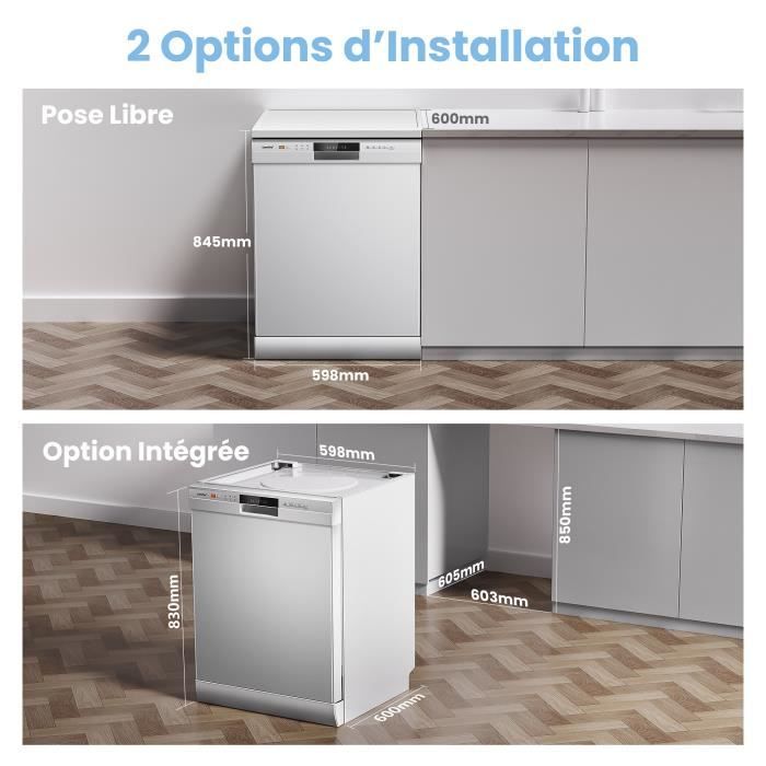 | Nom du produit | Lave-vaisselle pose libre Comfee 60cm 49dB avec 12 couverts, 6 programmes Commande Bouton ou par téléphone,Classe D |