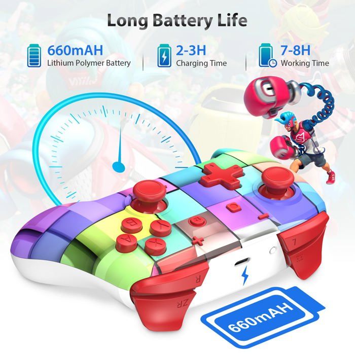 | Nom du produit | Manette Switch Pro Rubis-Cubes – Sans fil pour Switch 1/2, Lite, OLED & PC filaire – Turbo & Double vibration |