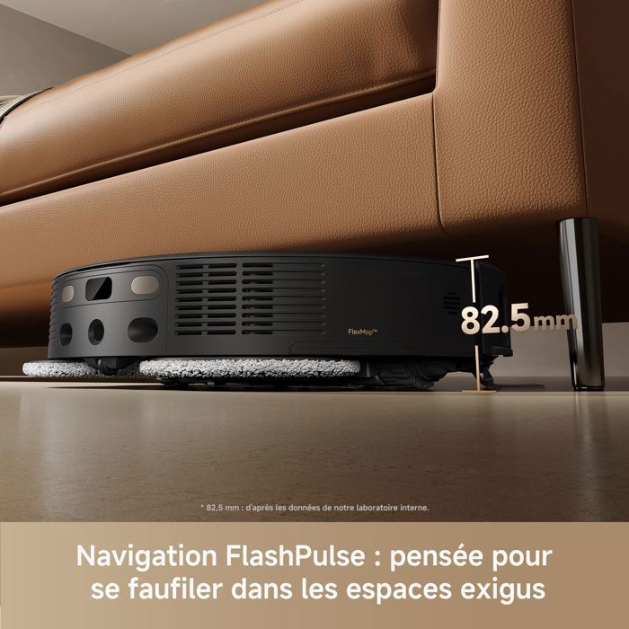 - Dimensions du robot aspirateur : 350 x 350 x 82,5 mm