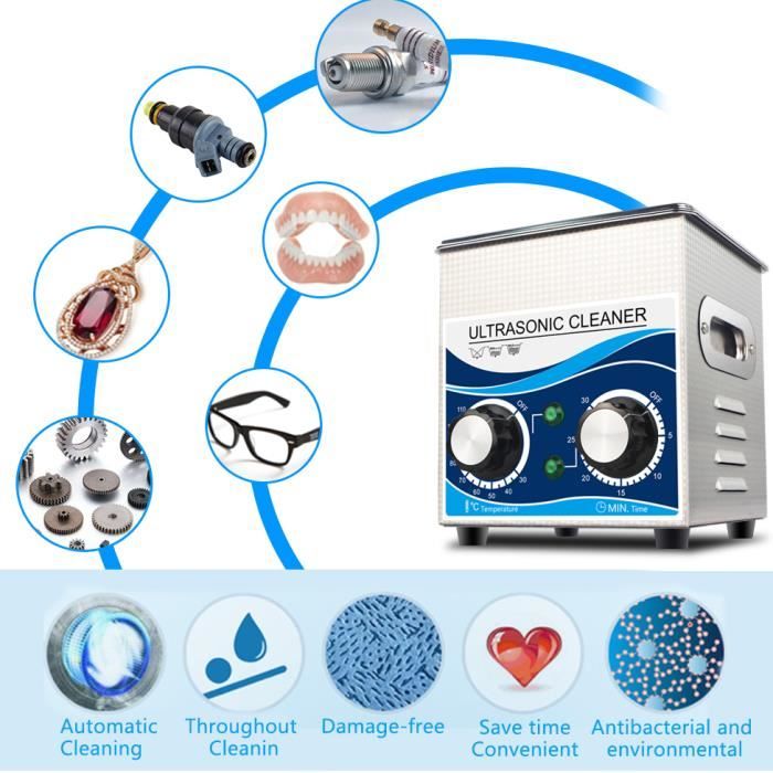 - Nettoyeur à Ultrasons Argent 60W Minuterie De Chauffage En Acier Nettoyage Bijoux Bougie D’allumage Injecteur Rondelle